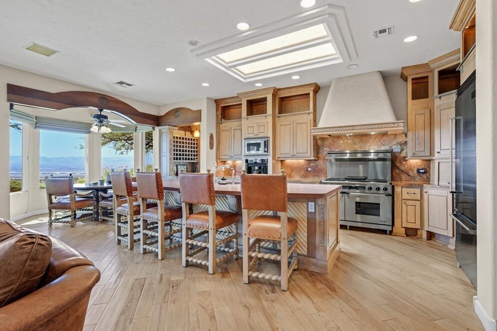 - A massive island with Redrock-quarried stone accents illuminated by a skylight