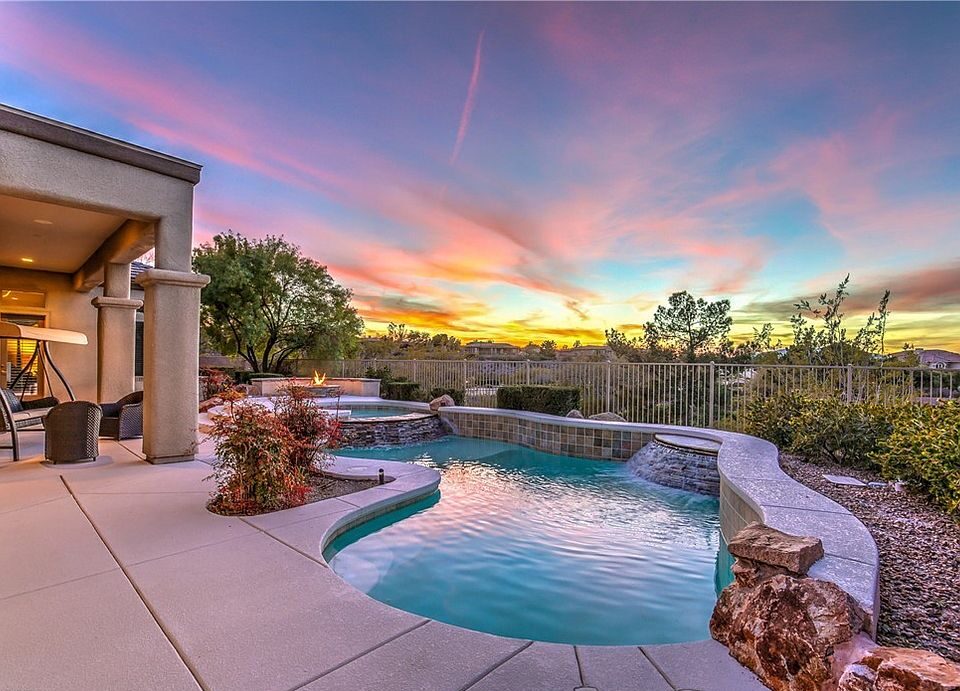 The backyard oasis was designed for relaxation and entertainment alike. Enjoy the sparkling pool and spa, tranquil waterfalls, firepit, and built-in BBQ island—all while taking in breathtaking views of the golf course and city lights. This is outdoor living at its finest.