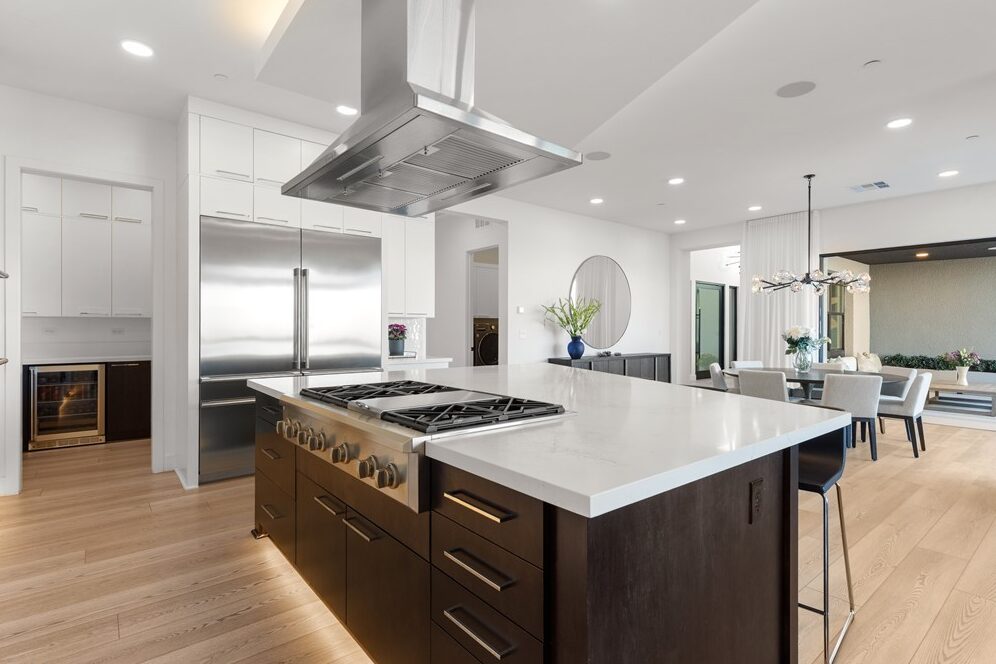 The gourmet kitchen is a chef’s dream, featuring a massive quartz island, top-tier appliances, custom cabinetry, and a butler’s pantry designed for both beauty and function. The primary suite is a private sanctuary, offering direct access to the outdoors and a spa-style bathroom complete with designer finishes and an indulgent soaking tub.