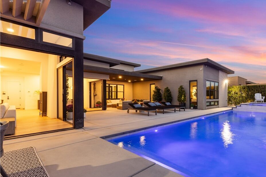 From the moment you step inside, seamless indoor-outdoor living defines the experience. Expansive pocket doors open to reveal panoramic vistas of the Las Vegas Strip, surrounding mountains, and serene valley landscapes—creating the perfect backdrop for entertaining or quiet evenings under the desert sky.