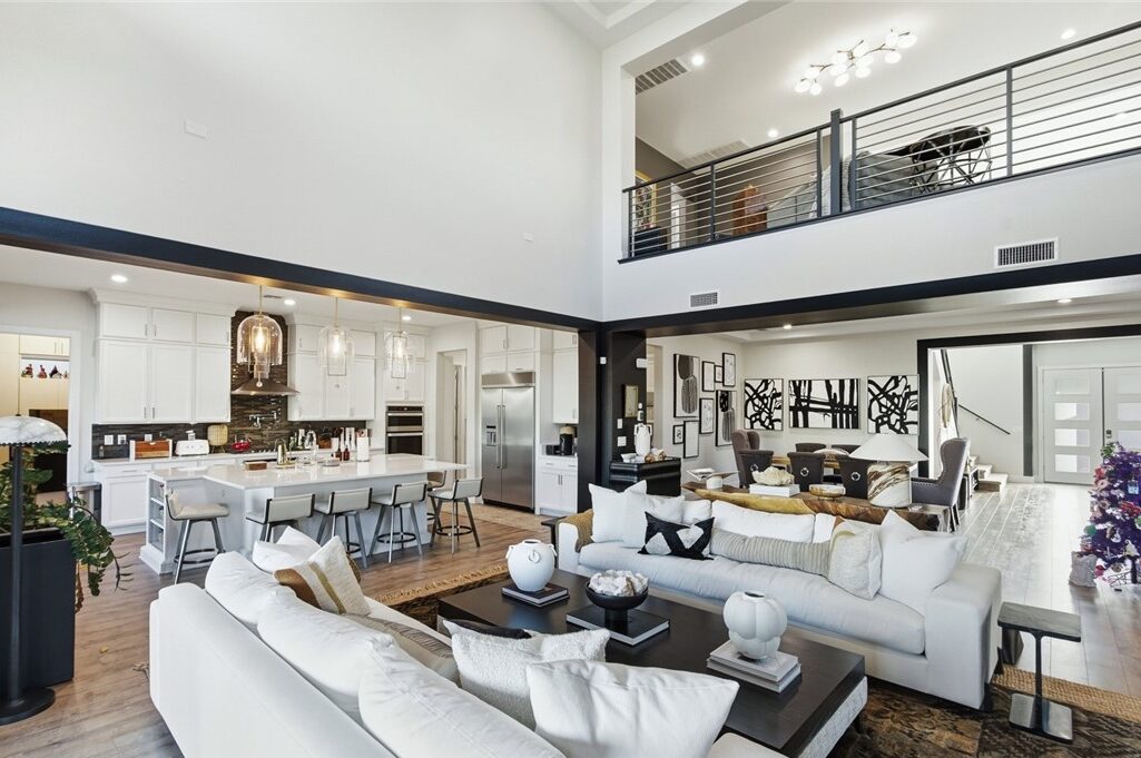 Spanning over 5,000 square feet, the home offers an extraordinary layout designed for both comfort and sophistication. The moment you step inside, you feel the intention behind every detail. The expansive main level includes a beautifully designed mother-in-law suite, perfect for multigenerational living or extended guest stays. A dedicated office and an elegant den provide the ideal balance of productivity and relaxation, while the open-concept living areas create an inviting flow throughout the home.