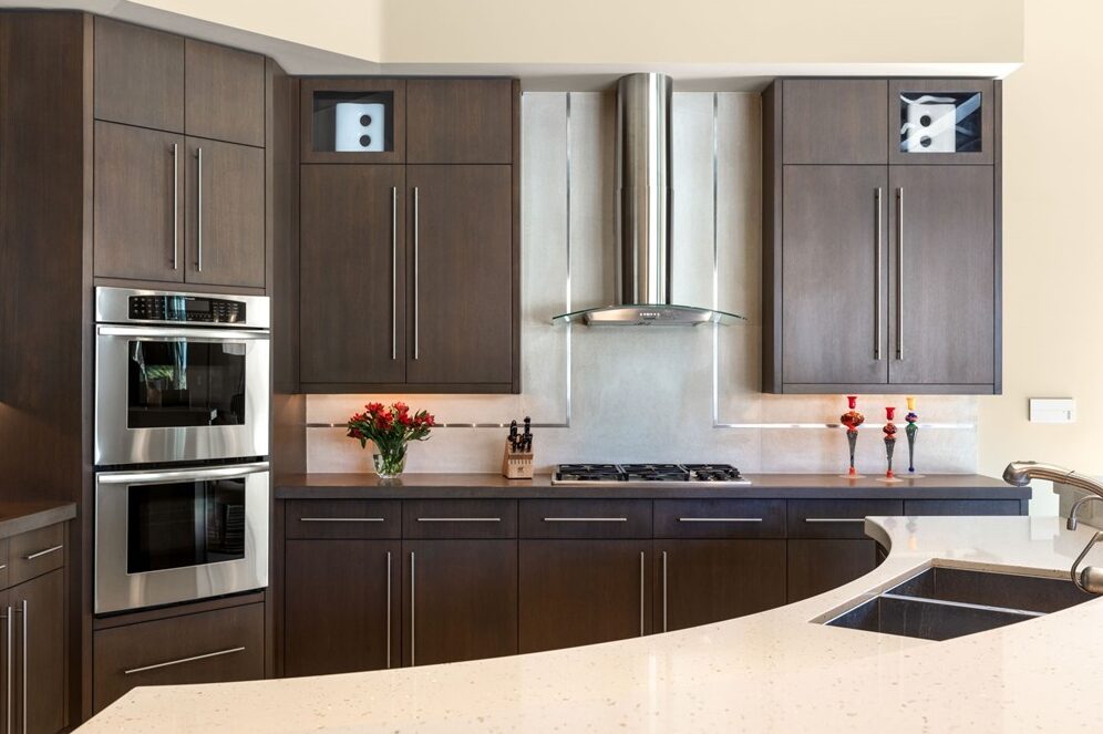 At the heart of the home, the kitchen is as functional as it is striking. Outfitted with top-of-the-line appliances and a dedicated butler’s pantry, it offers panoramic sightlines that extend beyond the interiors to the lush fairway and skyline beyond. Whether hosting formal dinners or casual gatherings, the space flows effortlessly into the great room, where pocketing sliding glass doors disappear to create a true indoor-outdoor environment.